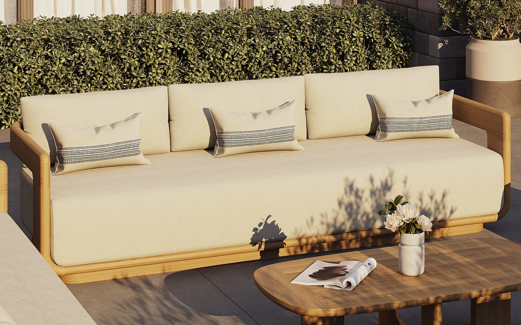 КАРКАСКоллекция Bond изготовлена из массива ироко — тропической породы дерева, известной своей высокой прочностью, устойчивостью к влаге и перепадам температуры. Это идеальный выбор для уличной мебели: ироко не подвержено деформации, не боится солнца и дождя, с годами приобретает благородную патину. Каркасы мебели выполнены с особым вниманием к геометрии: строгие линии сбалансированы мягкими округлыми формами. Благодаря точной подгонке и прочному соединению элементов, конструкции устойчивы и долговечны даже при интенсивной эксплуатации на открытом воздухе. Плавные изгибы и скруглённые углы делают мебель безопасной при эксплуатации. |