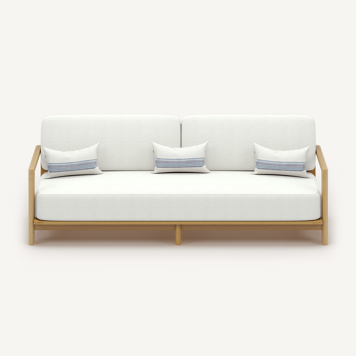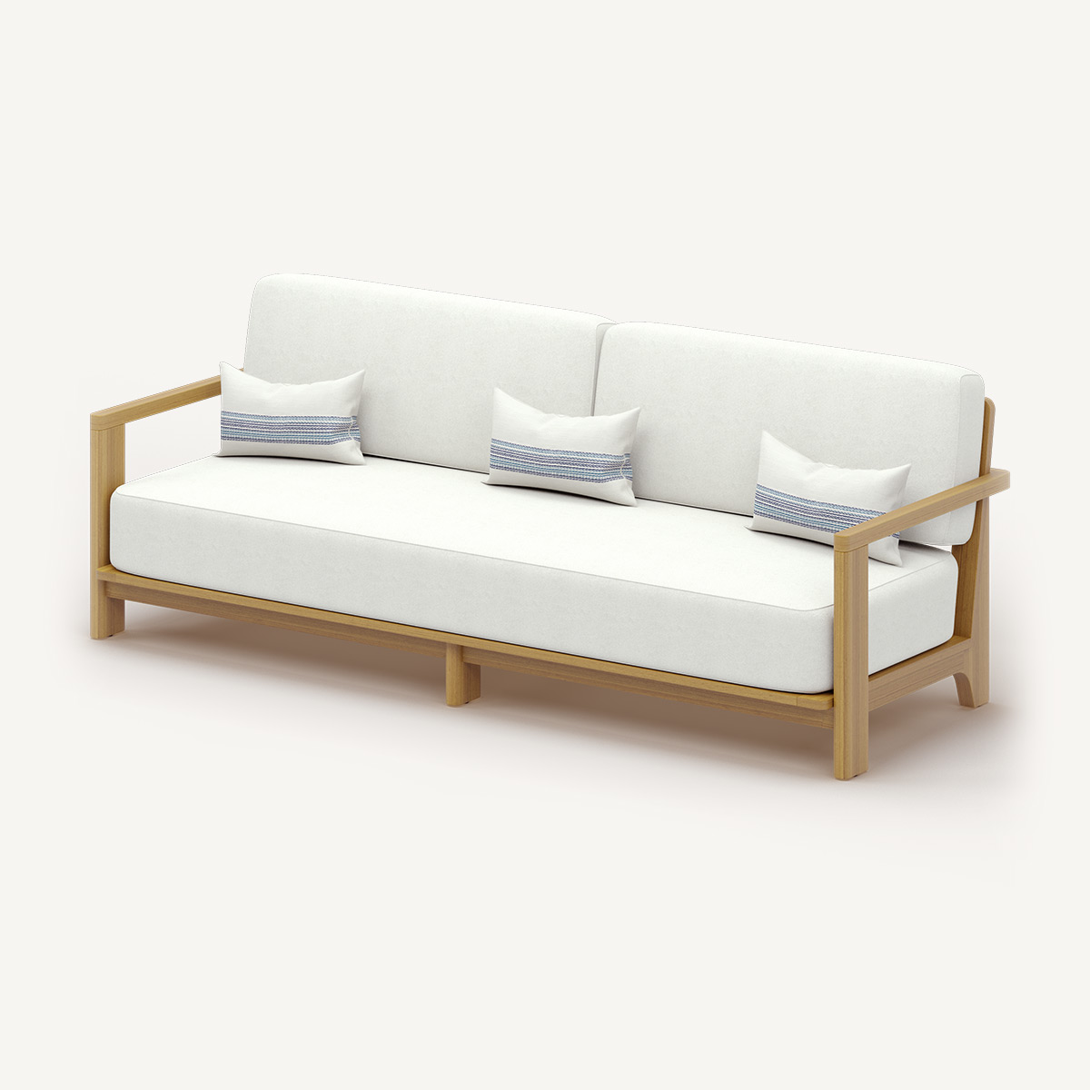 Трёхместный диван коллекции MERRITT— современное решение для лаунж-зоны под открытым небом. Мягкие геометричные формы сочетаются с выразительной деревянной основой, придавая дивану изысканный и одновременно функциональный облик.