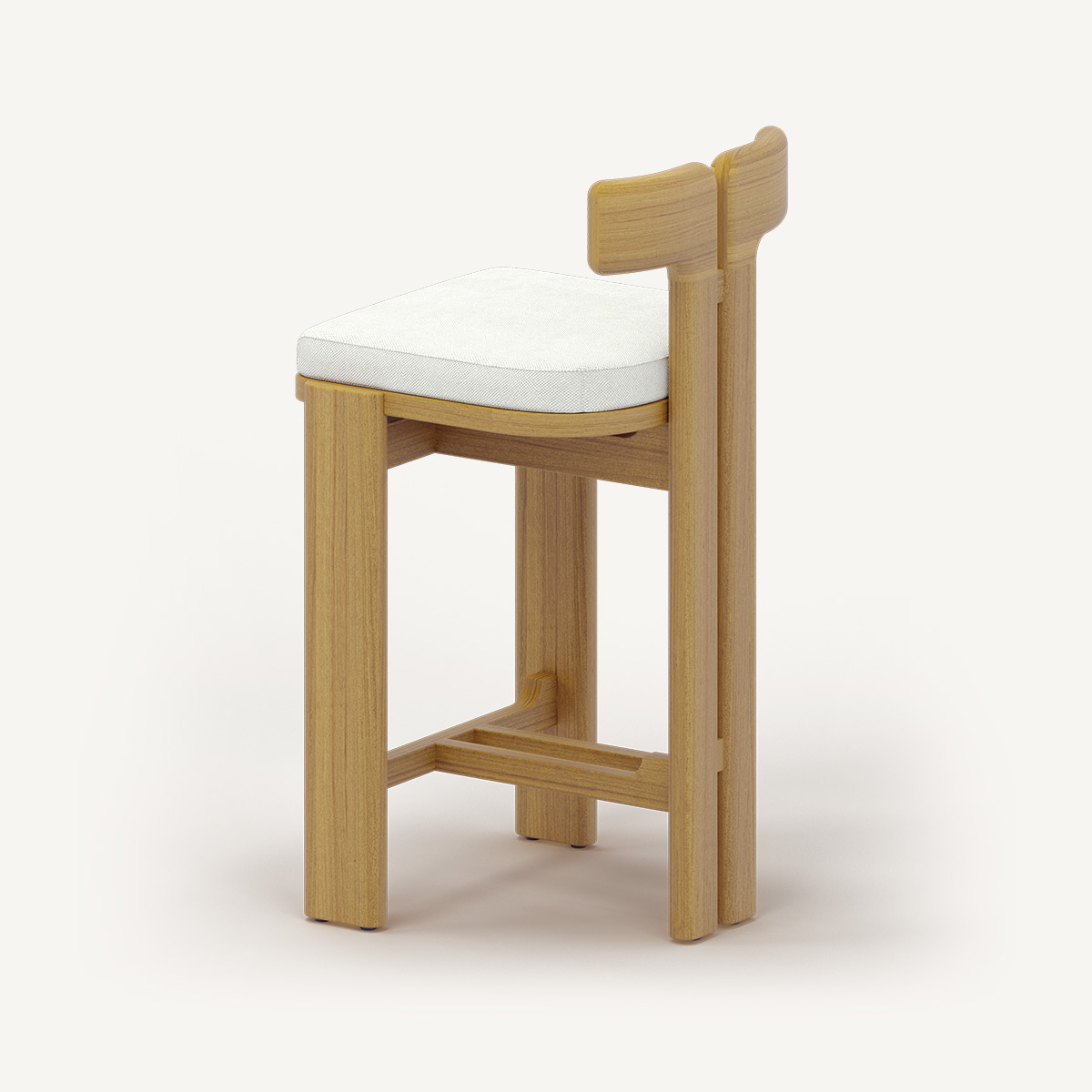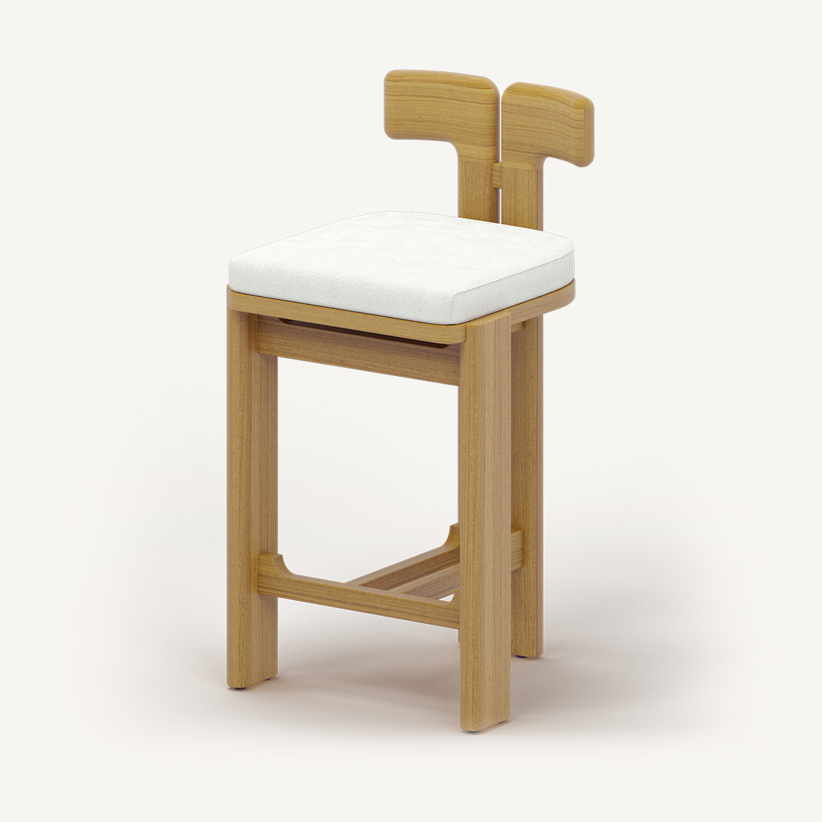 Барный стул BOND сочетает лаконичную геометрию с комфортной посадкой. Изготовленный из ироко и предназначенный для улицы, он уместен как у уличного бара, так и у высокой столешницы на террасе. Сдержанный силуэт делает его универсальным решением в самых разных ландшафтных ансамблях.