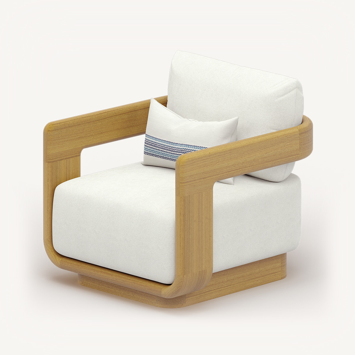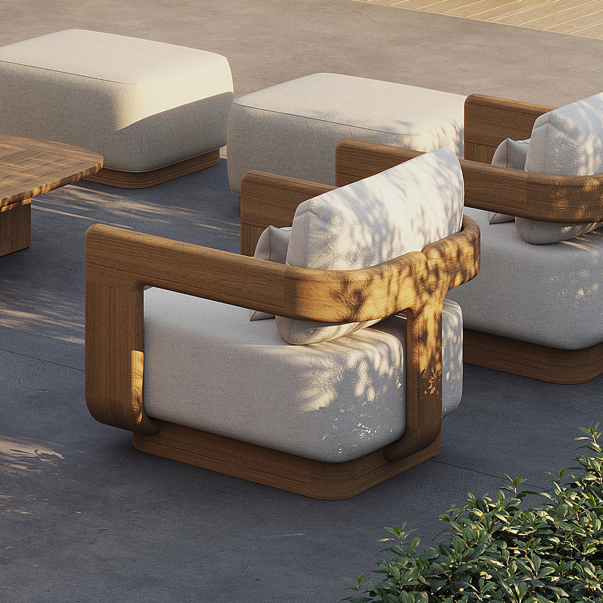 Кресло BOND — это лаконичный ответ на запрос к уличному комфорту нового уровня. Низкая посадка задаёт расслабленный, почти курортный ритм, а массивные подушки обволакивают, будто приглашая остаться надолго.
