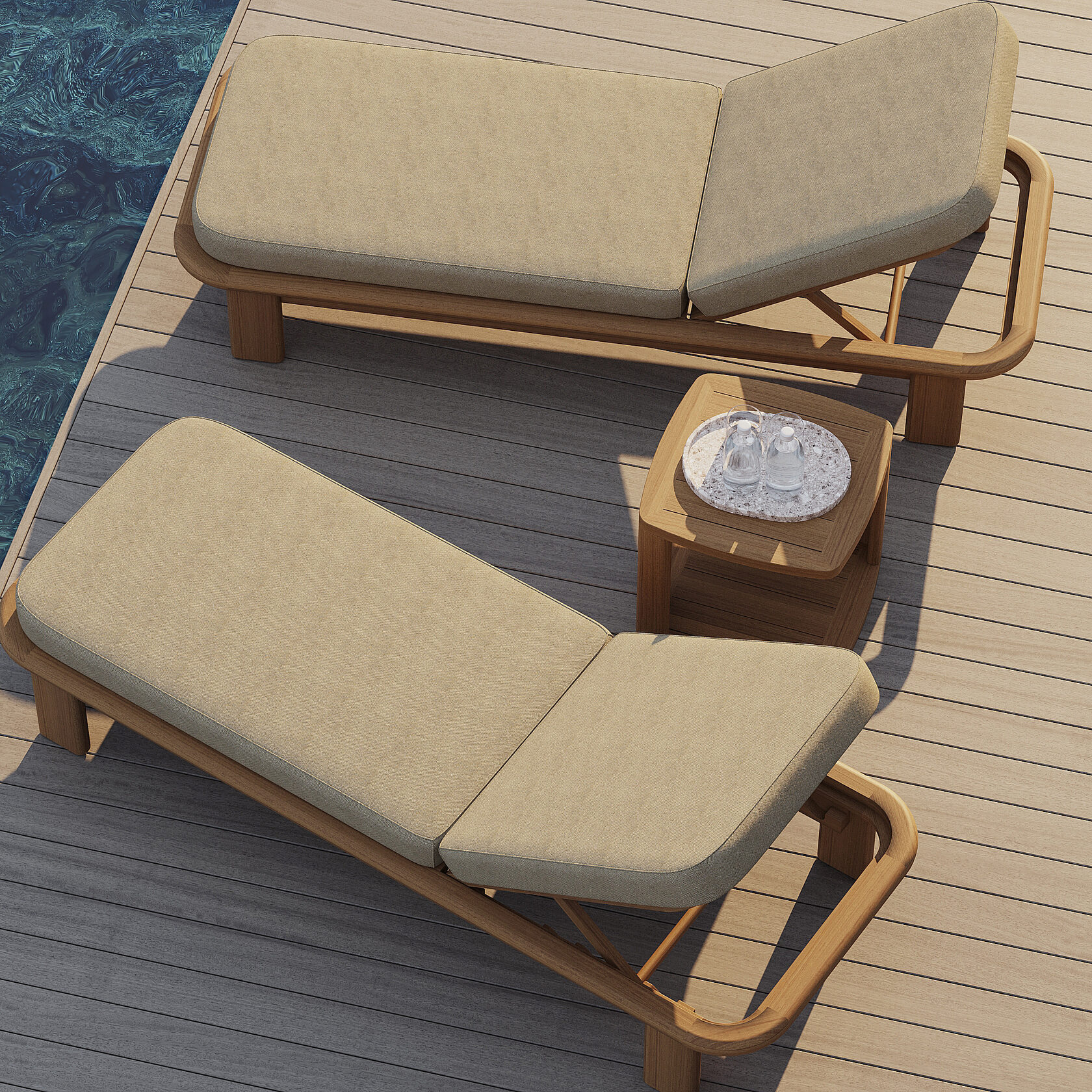 Шезлонг BOND предлагает новый уровень отдыха: анатомически выверенная форма, устойчивый к климату деревянный каркас и мягкие подушки, приглашающие к долгому отдыху. Благодаря гармоничному сочетанию структуры и тактильности он превращает любую террасу или сад в место полной перезагрузки.