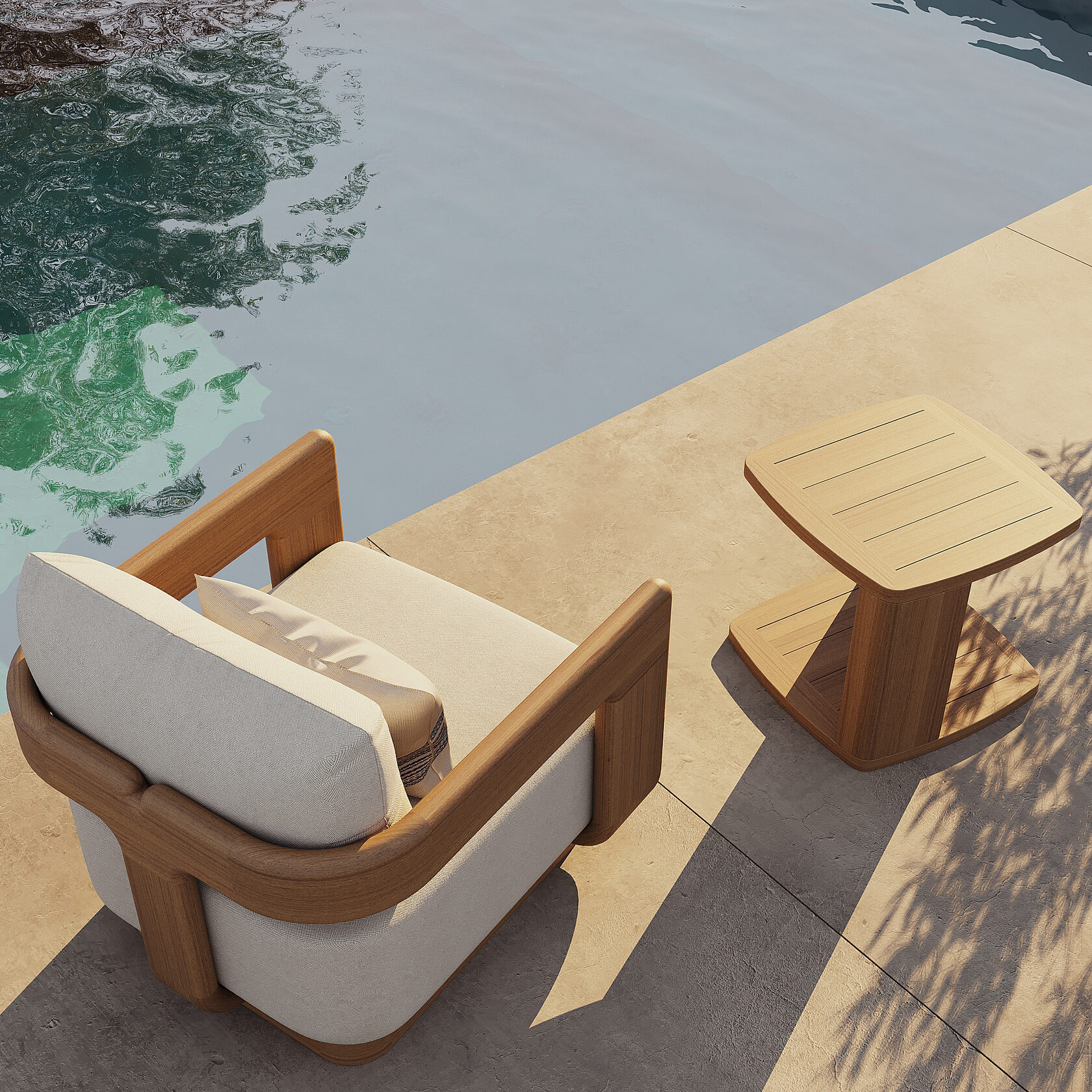 Коллекция Bond изготовлена из массива ироко — тропической породы дерева, известной своей высокой прочностью, устойчивостью к влаге и перепадам температуры. Это идеальный выбор для уличной мебели: ироко не подвержено деформации, не боится солнца и дождя, с годами приобретает благородную патину. Каркасы мебели выполнены с особым вниманием к геометрии: строгие линии сбалансированы мягкими округлыми формами. Благодаря точной подгонке и прочному соединению элементов, конструкции устойчивы и долговечны даже при интенсивной эксплуатации на открытом воздухе. Плавные изгибы и скруглённые углы делают мебель безопасной при эксплуатации.