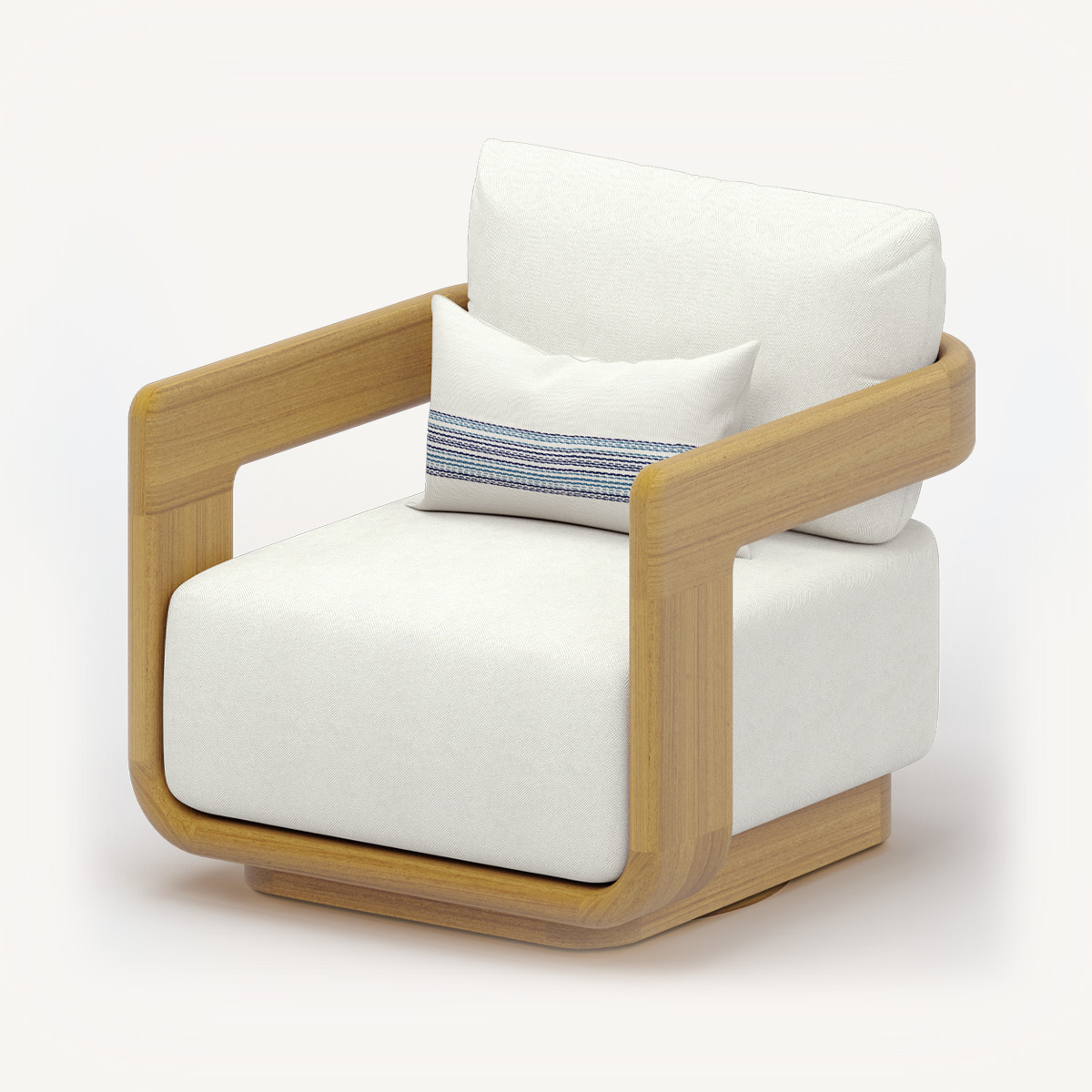 Плавные линии и мягкий комфорт кресла BOND дополнены скрытым поворотным механизмом, который обеспечивает свободу движения и лёгкую смену направления взгляда. Идеально для открытых лаунж-зон, где важно быть в моменте — будь то общение, отдых или наблюдение за природой.