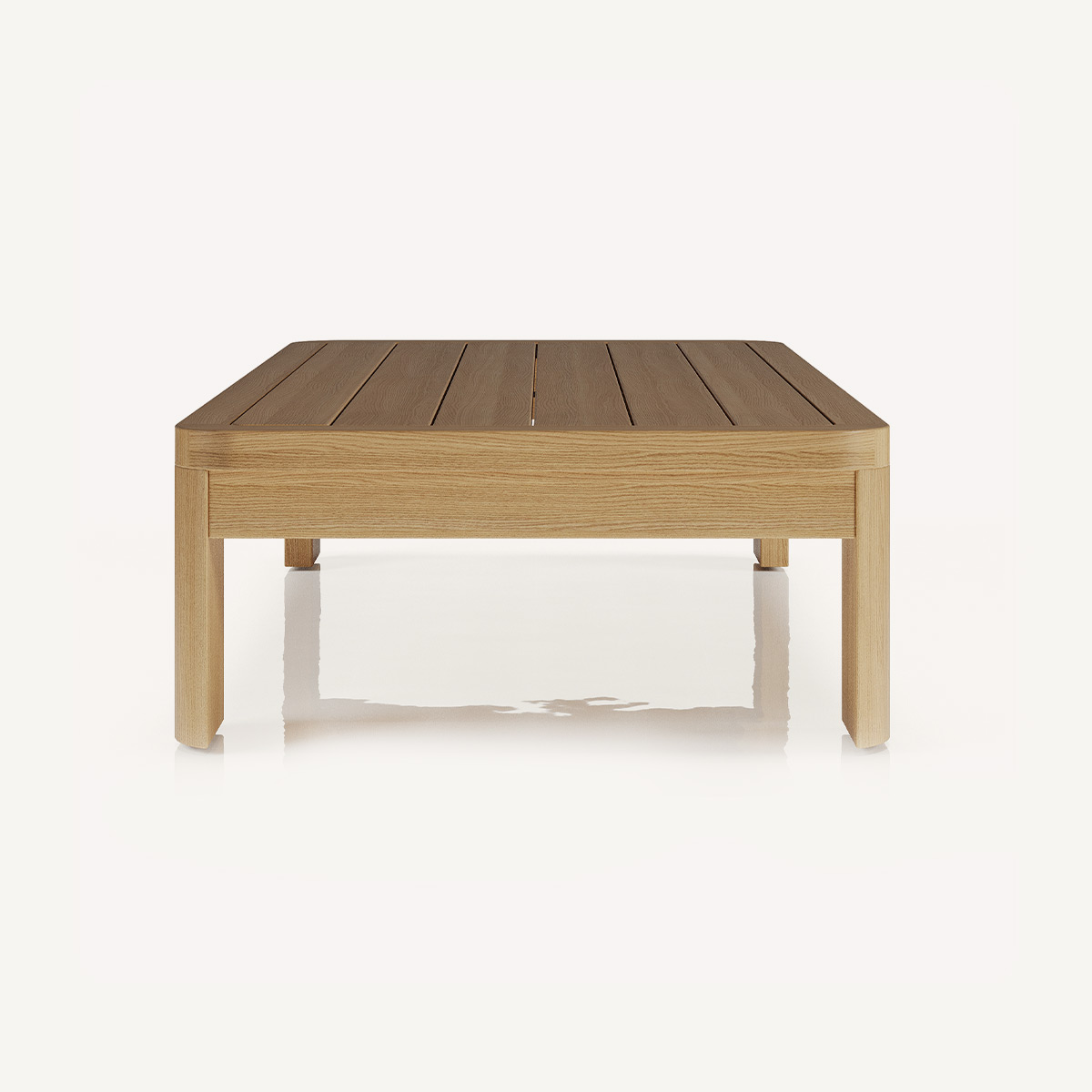 Журнальный столик Ellisse это прямоугольная поверхность сделана из реечного массива ироко — устойчивой тропической древесины, схожей по свойствам с тиком гарантирует надежность и долговечность.