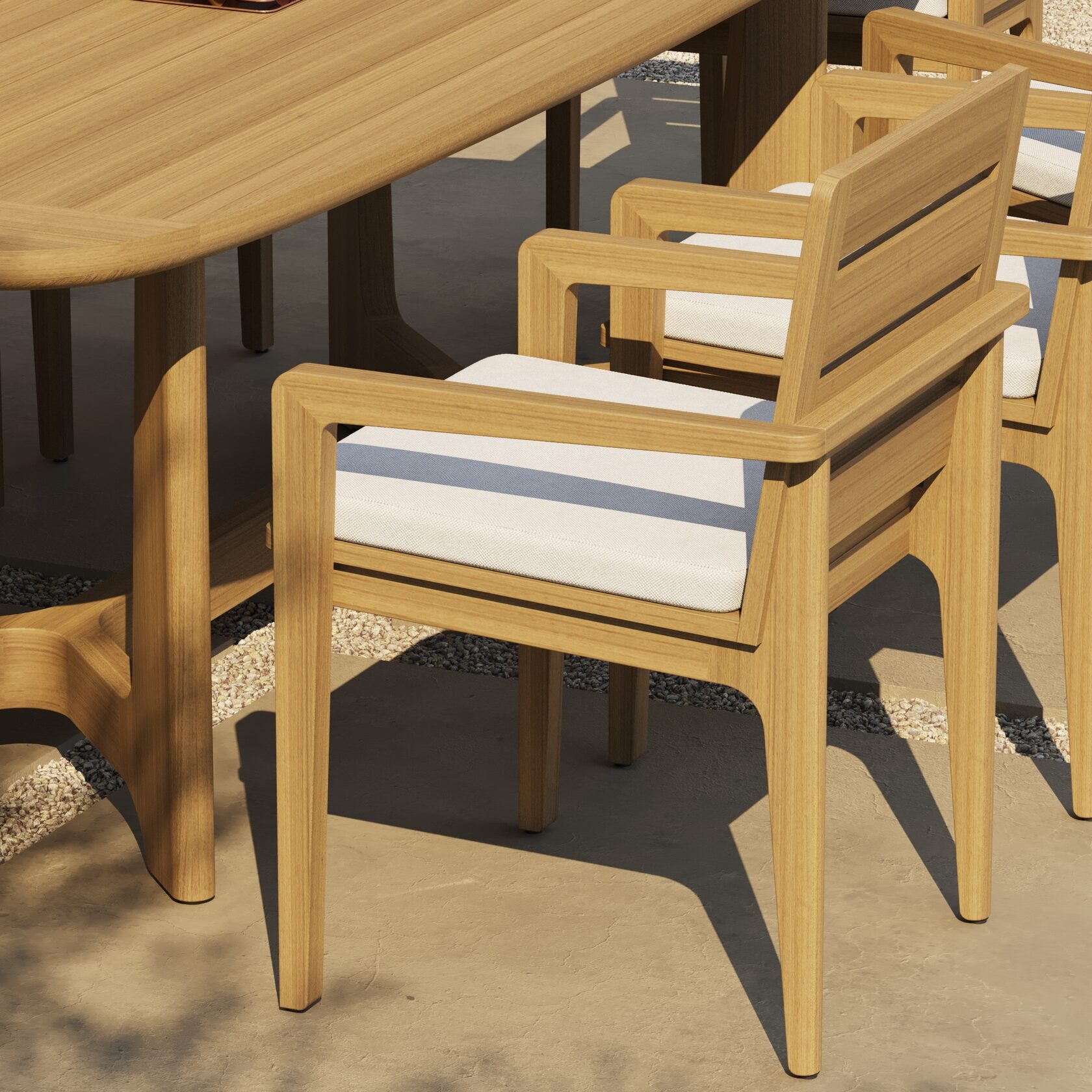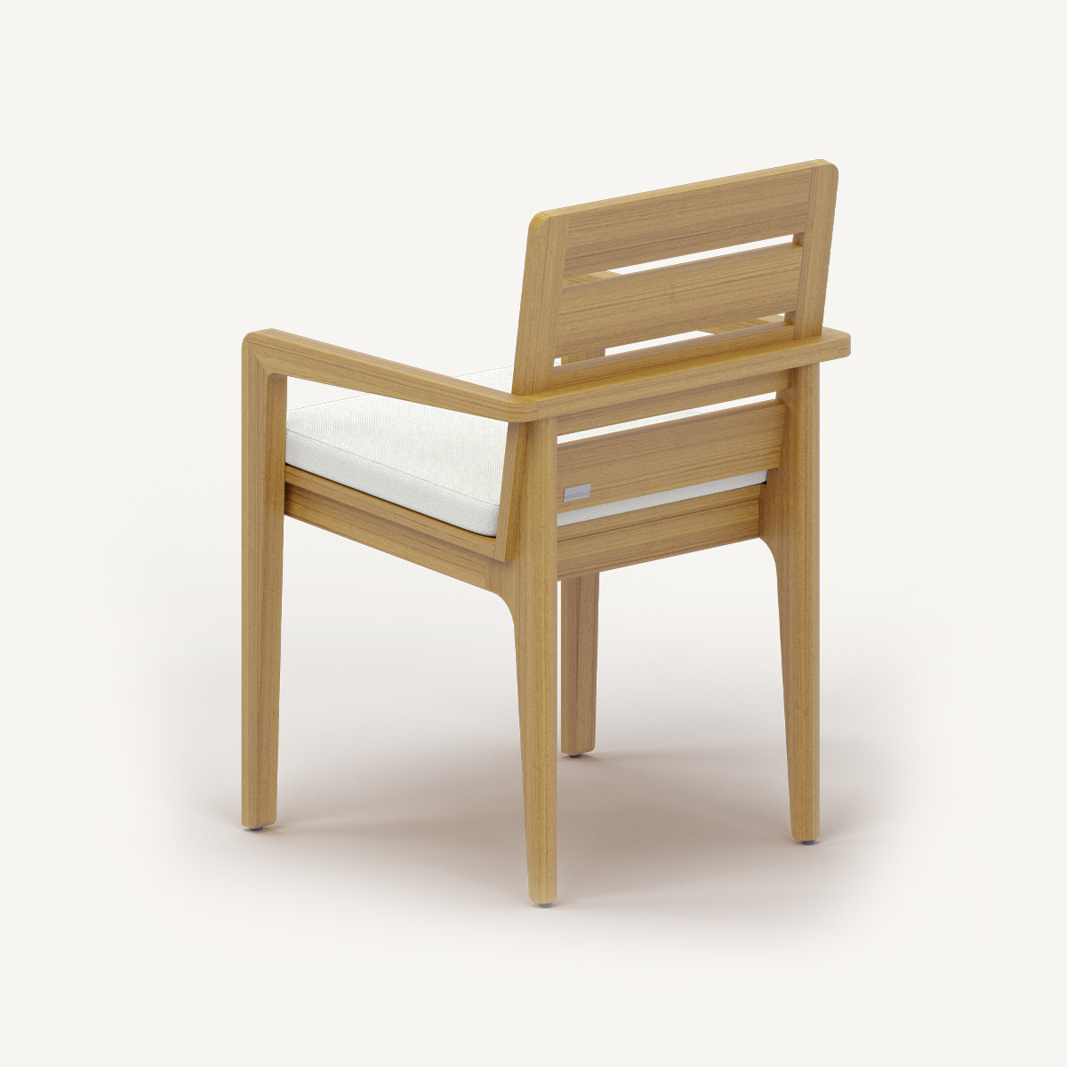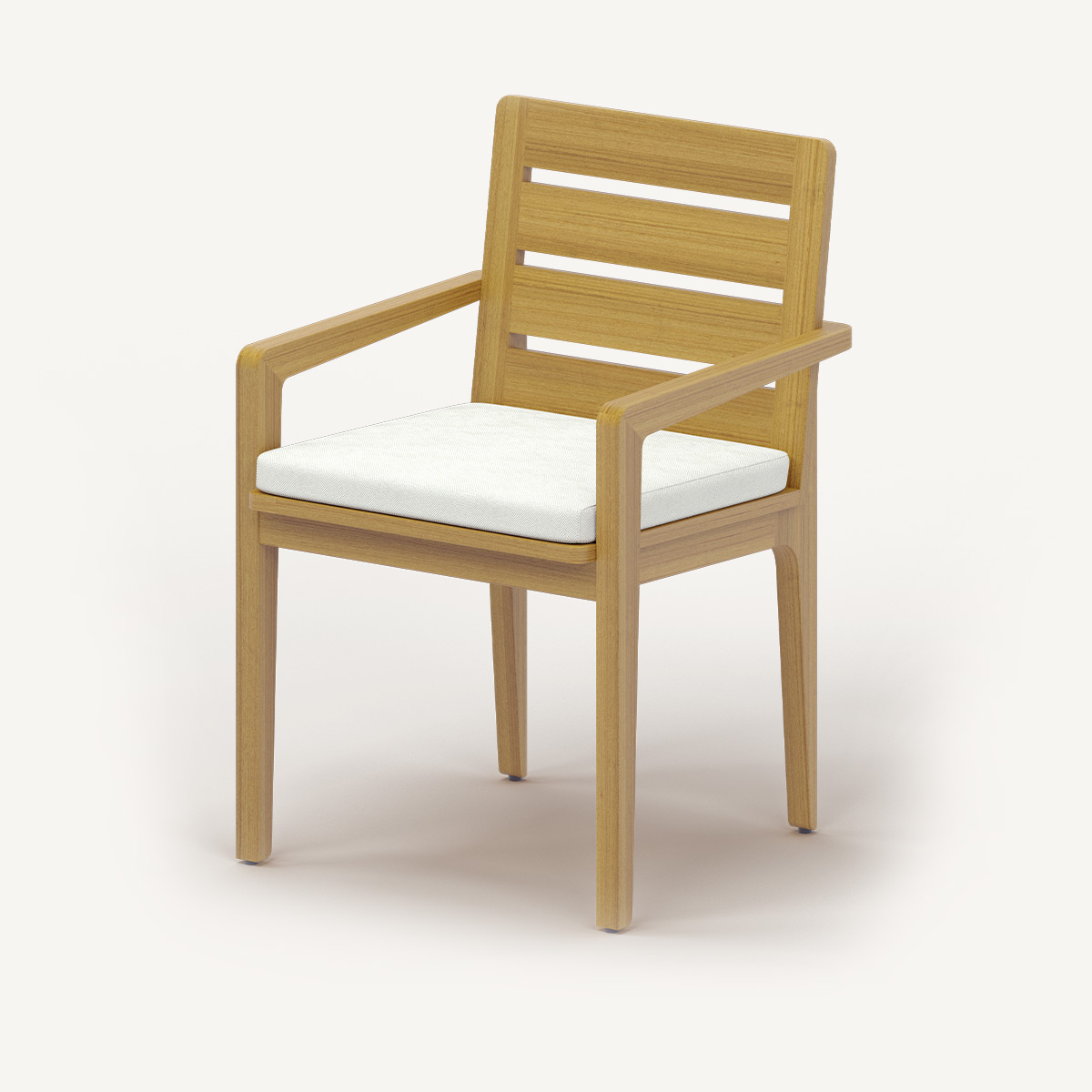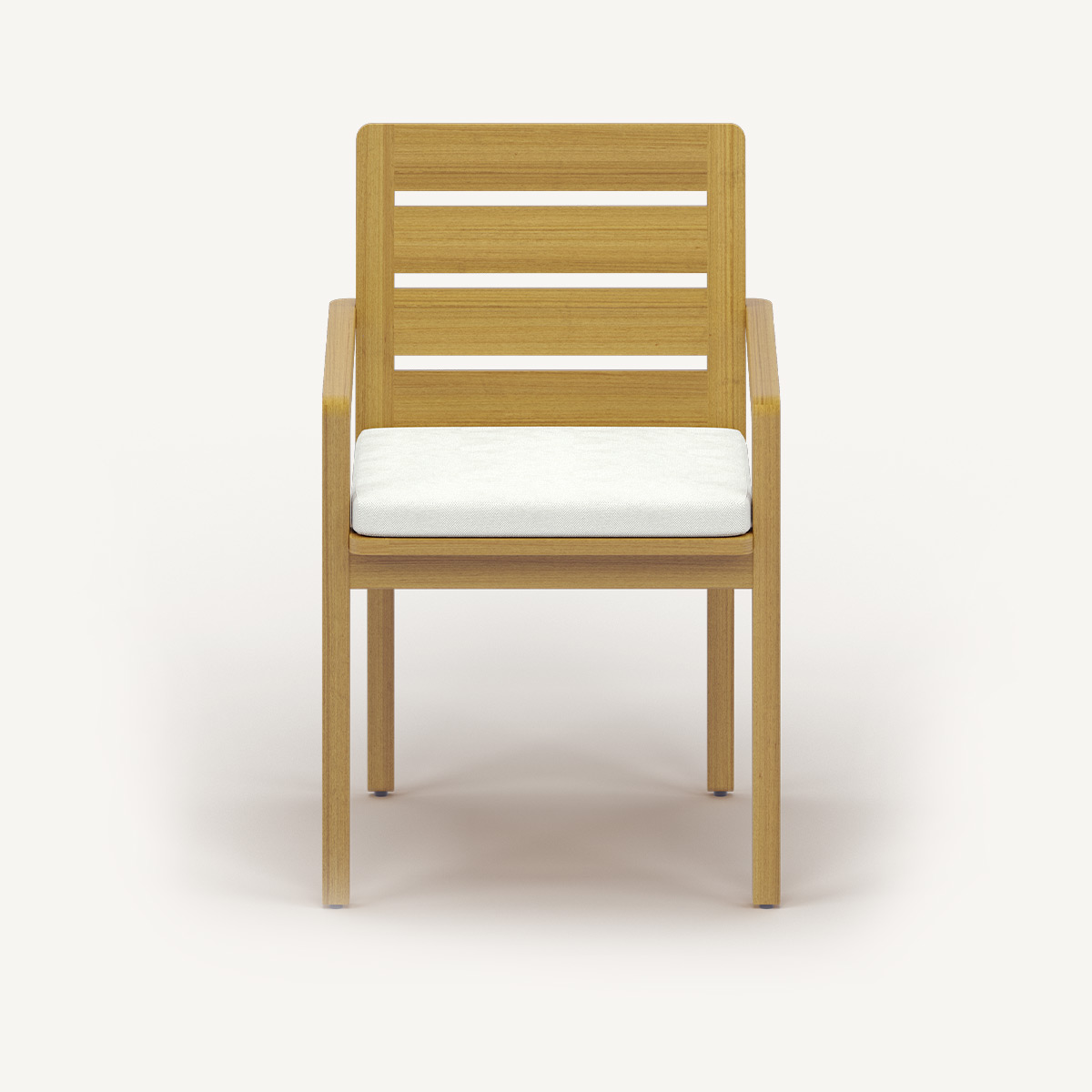 Четкие линии, продуманные пропорции и комфорт — обеденный стул MERRITT продолжает эстетику коллекции, отсылая к американскому модернизму середины XX века. Он выполнен из массива ироко — благородной тропической породы, устойчивой к погодным условиям, что делает его отличным выбором для уличных пространств.