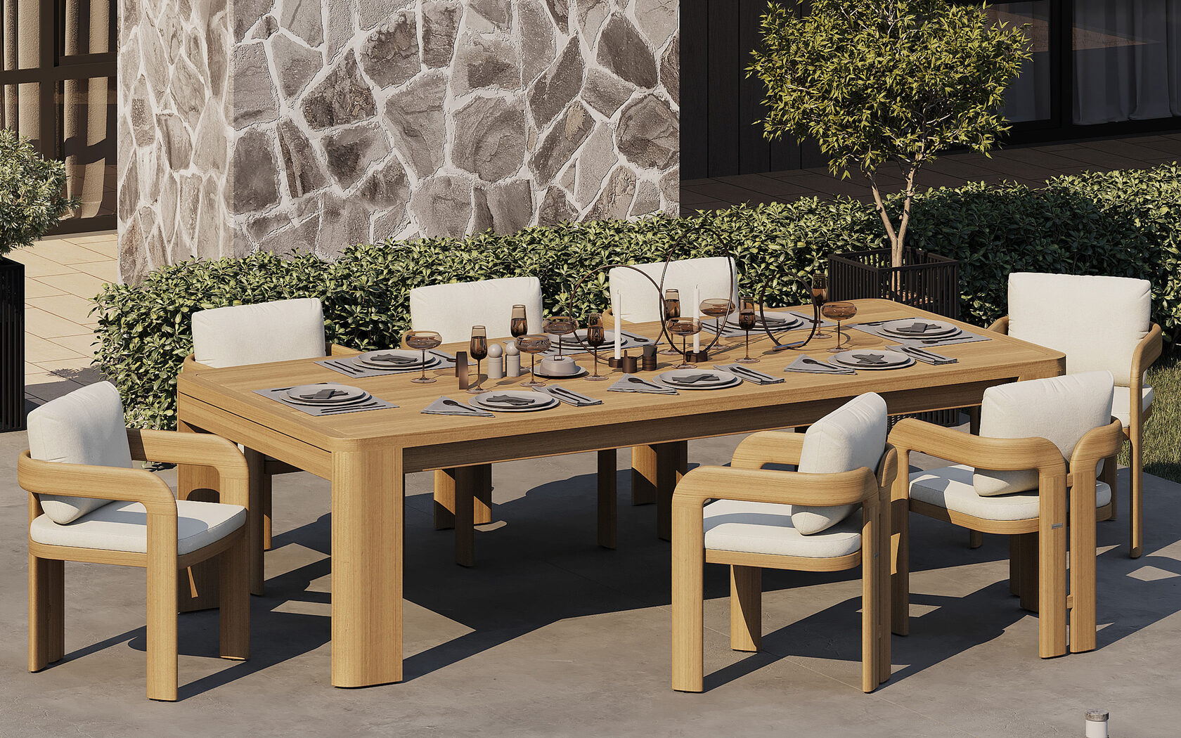 Коллекция Ellisse изготовлена из массива ироко — благородной африканской породы дерева, которая славится исключительной устойчивостью к климатическим воздействиям. Её природная прочность и влагостойкость делают ироко идеальным материалом для уличной мебели, особенно в условиях переменчивой погоды. Скульптурные линии и характерная раздельная спинка кресел делают коллекцию узнаваемой и визуально лёгкой. Это дизайн, в котором сочетаются архитектурная чёткость, органика форм и продуманная эргономика — для тех, кто ценит не только эстетику, но и тактильное качество материала.