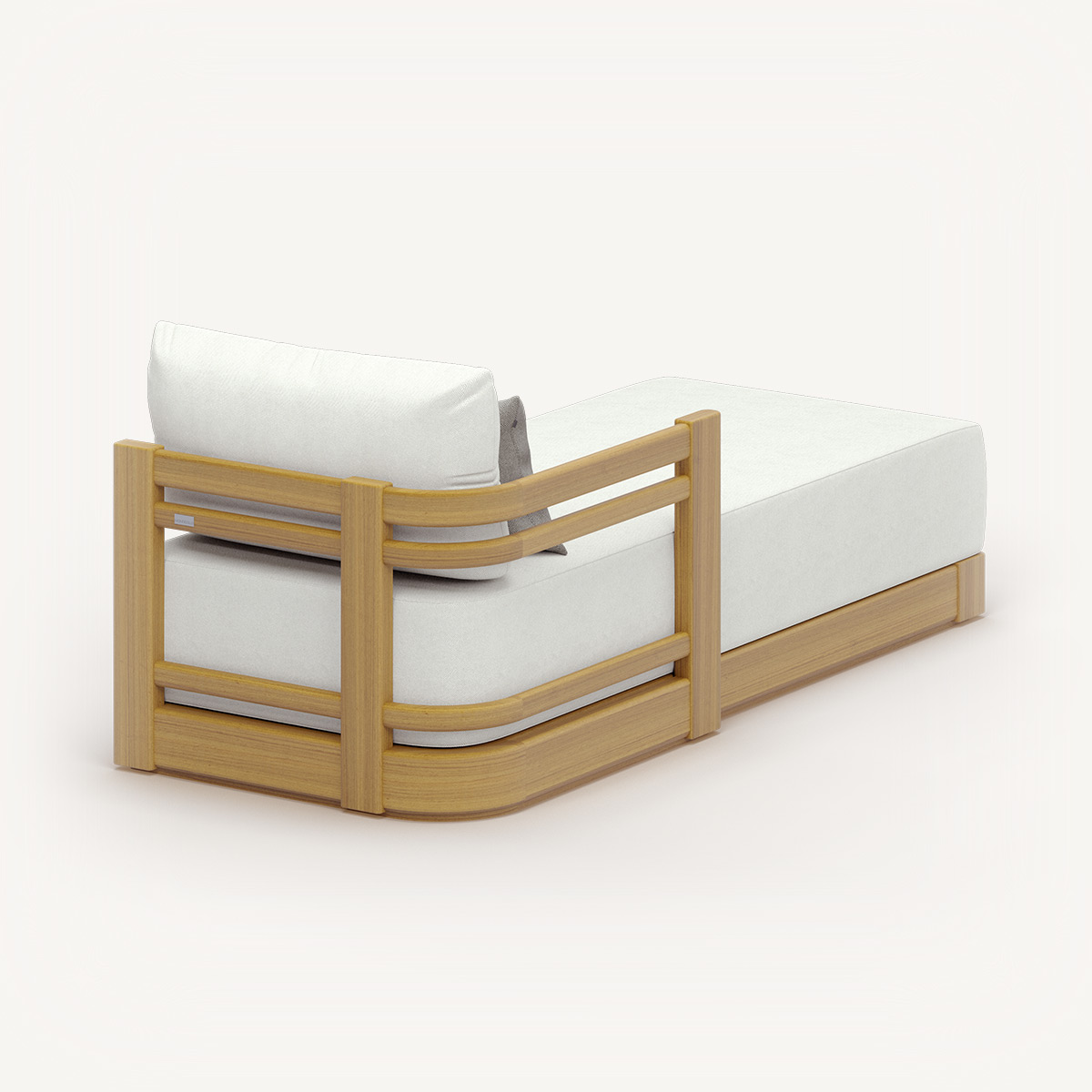 Съёмные чехлы коллекции HAMETT выполнены из высокотехнологичных тканей, разработанных специально для использования на открытом воздухе. Эти материалы не выцветают под воздействием солнца (стойкость к UV-излучению); обладают водо- и грязеотталкивающими свойствами пропиткой; имеют структурную плотность, сохраняющую форму подушек даже при интенсивной эксплуатации. Обратите внимание, что все наши материалы тактильно приятны и внешне приближены к интерьерному текстилю. Обивка доступна в нейтральной палитре, которая подчёркивает натуральную фактуру дерева и не конфликтует с ландшафтным окружением.