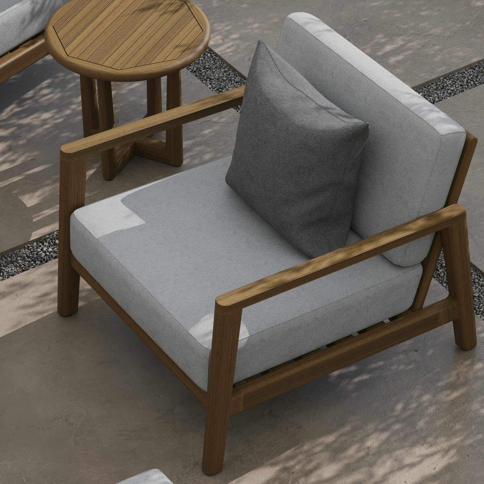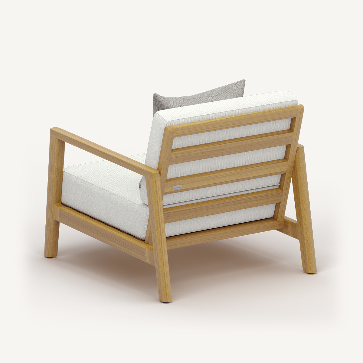Каркас мебели коллекции MADDENS выполнен из массива ироко — тропической древесины, обладающей исключительной прочностью, устойчивостью к влаге и температурным перепадам. Этот материал не только долговечен, но и выразителен: его естественная текстура и тёплый тон подчёркивают архитектурную строгость форм и создают ощущение уверенности и основательности.