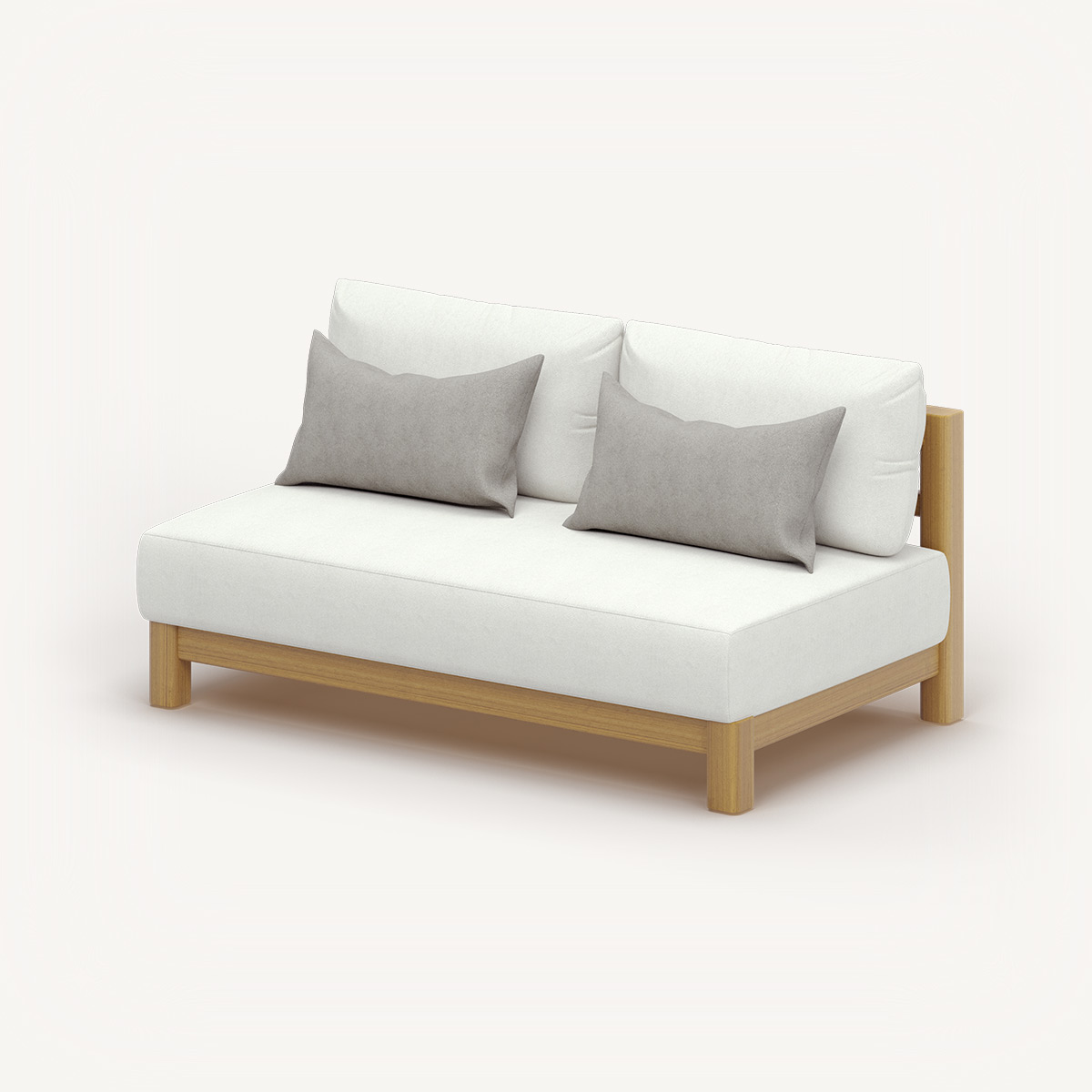 Дерево ироко выбрано не случайно. Это африканский дуб, который столетиями служил в кораблестроении — материал, знающий, что значит противостоять стихии и при этом сохранять благородство. В сочетании с тщательно подобранными тканями получается мебель, которая стареет красиво, приобретая характер.