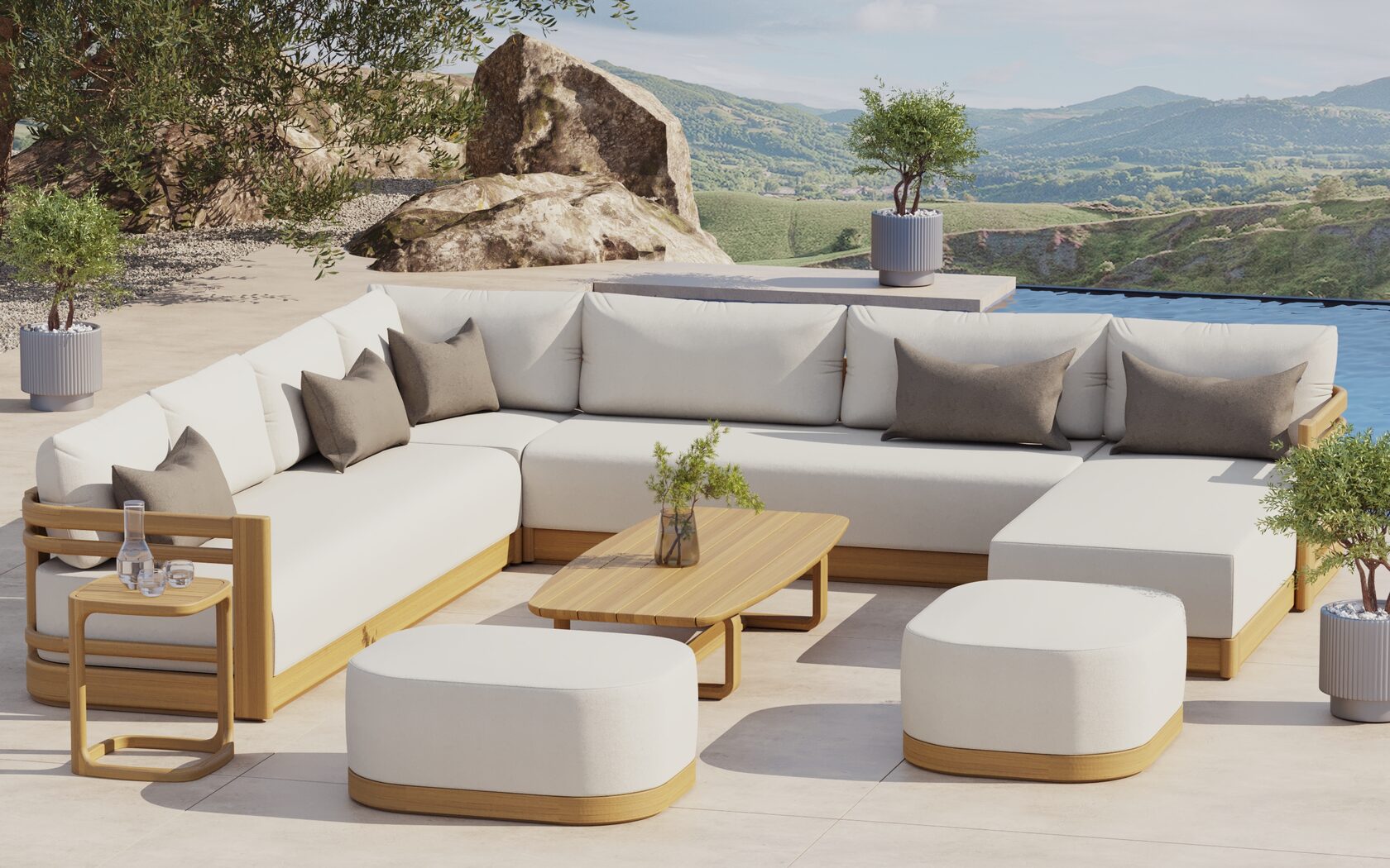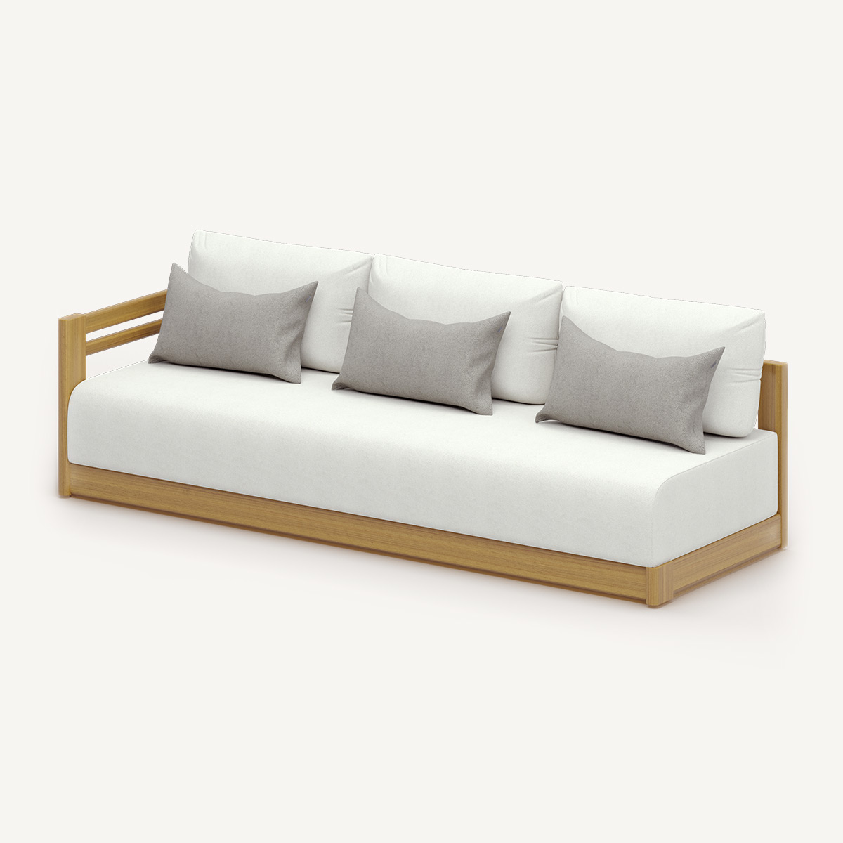 Съёмные чехлы коллекции HAMETT выполнены из высокотехнологичных тканей, разработанных специально для использования на открытом воздухе. Эти материалы не выцветают под воздействием солнца (стойкость к UV-излучению); обладают водо- и грязеотталкивающими свойствами пропиткой; имеют структурную плотность, сохраняющую форму подушек даже при интенсивной эксплуатации. Обратите внимание, что все наши материалы тактильно приятны и внешне приближены к интерьерному текстилю. Обивка доступна в нейтральной палитре, которая подчёркивает натуральную фактуру дерева и не конфликтует с ландшафтным окружением.