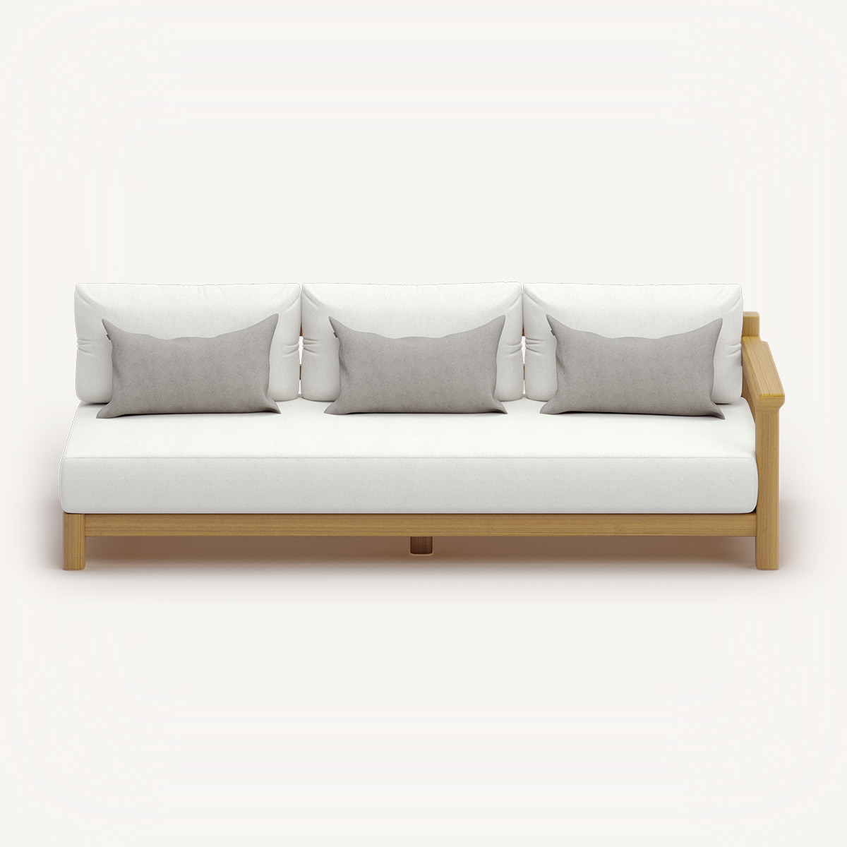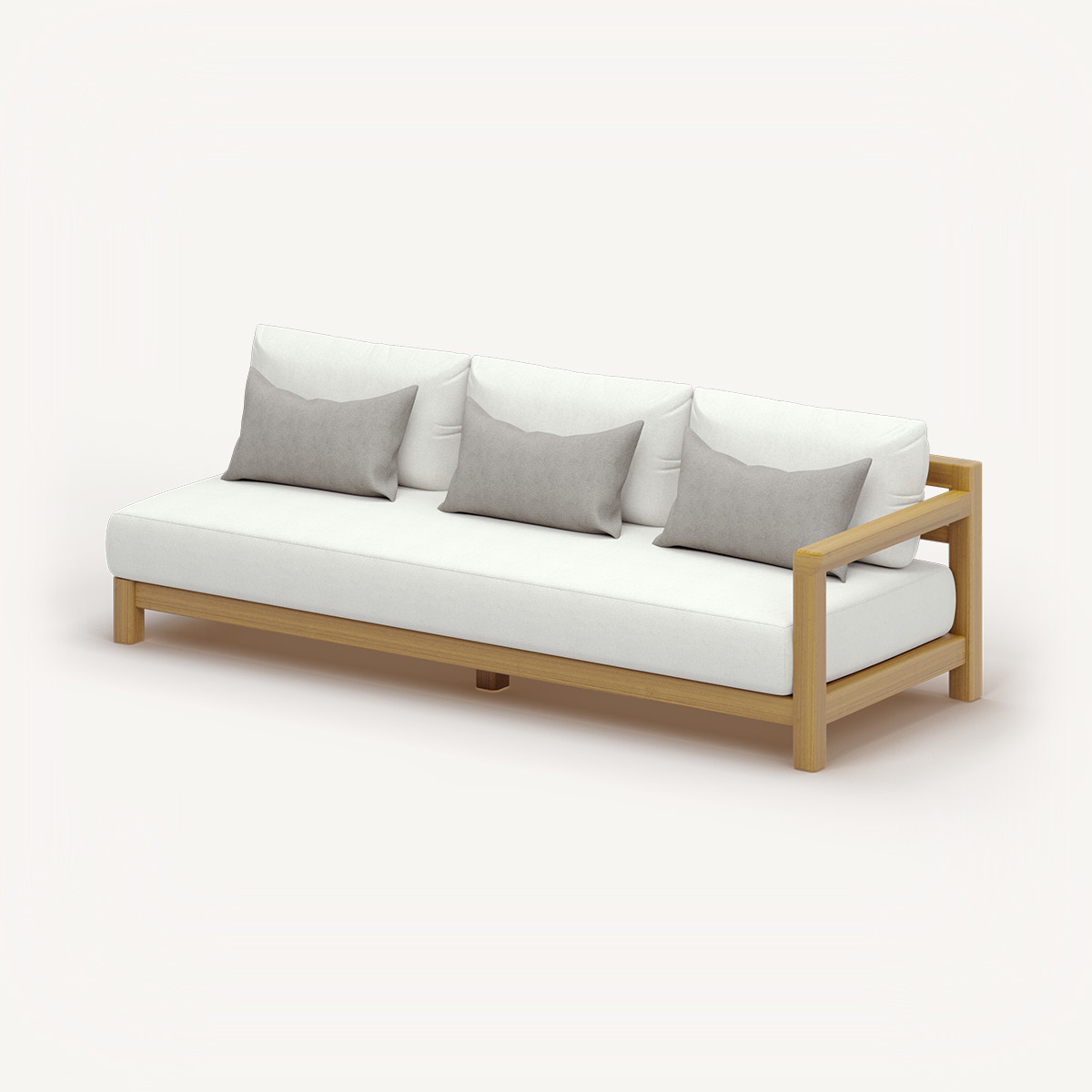 Дерево ироко выбрано не случайно. Это африканский дуб, который столетиями служил в кораблестроении — материал, знающий, что значит противостоять стихии и при этом сохранять благородство. В сочетании с тщательно подобранными тканями получается мебель, которая стареет красиво, приобретая характер.