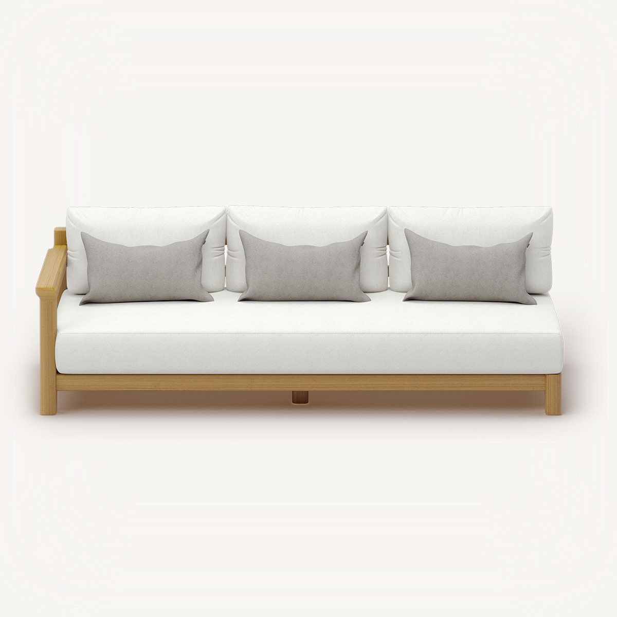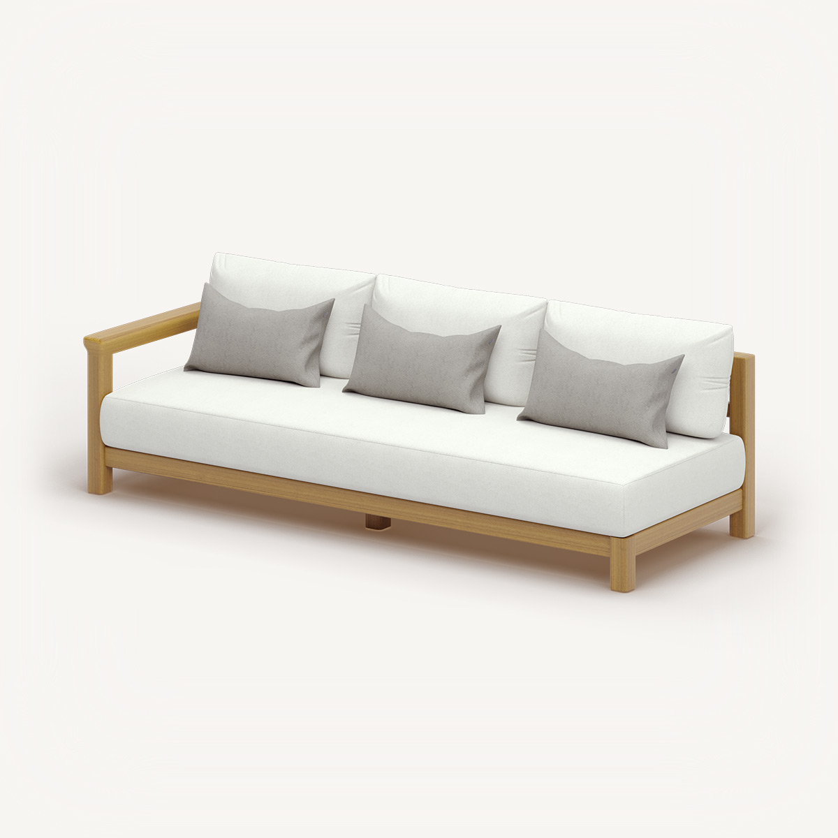 В основе — те же премиальные материалы: тёплая, золотистая древесина ироко, уличные ткани, устойчивые к ультрафиолету и осадкам, а также мягкие, восстанавливающие форму подушки.