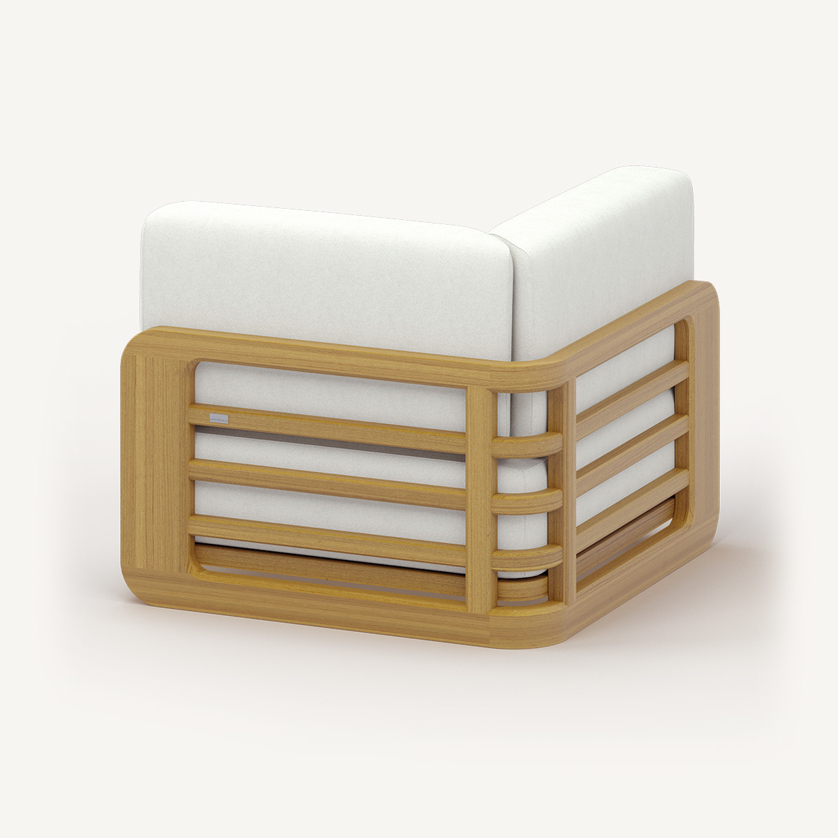 Каркас коллекции Florida изготовлен из массива ироко — устойчивой тропической древесины, схожей по свойствам с тиком. Ироко прекрасно переносит влагу, перепады температур и солнечную активность, поэтому идеально подходит для мебели, предназначенной для улицы и террас. Форма каждого изделия — результат архитектурного подхода: плавные изгибы без острых граней создают визуальную мягкость и физическую безопасность. Угол наклона спинок оптимизирован для отдыха на свежем воздухе, а подушки с уличной обивкой устойчивы к ультрафиолету, влаге и загрязнениям, не теряя при этом мягкости и цвета.