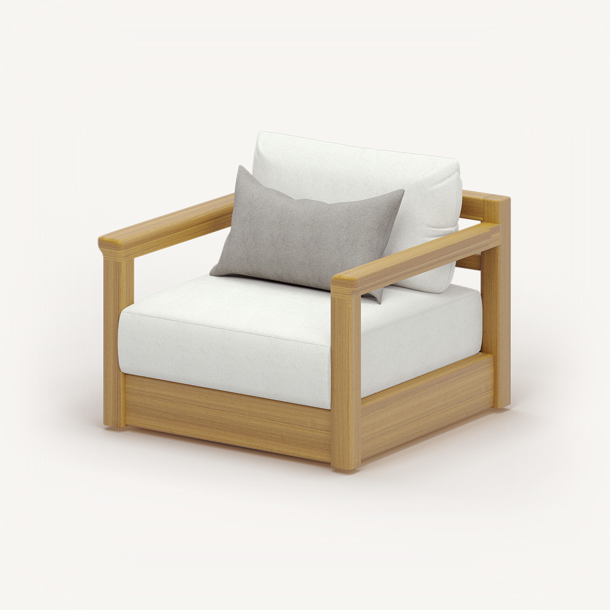 Дерево ироко выбрано не случайно. Это африканский дуб, который столетиями служил в кораблестроении — материал, знающий, что значит противостоять стихии и при этом сохранять благородство. В сочетании с тщательно подобранными тканями получается мебель, которая стареет красиво, приобретая характер.