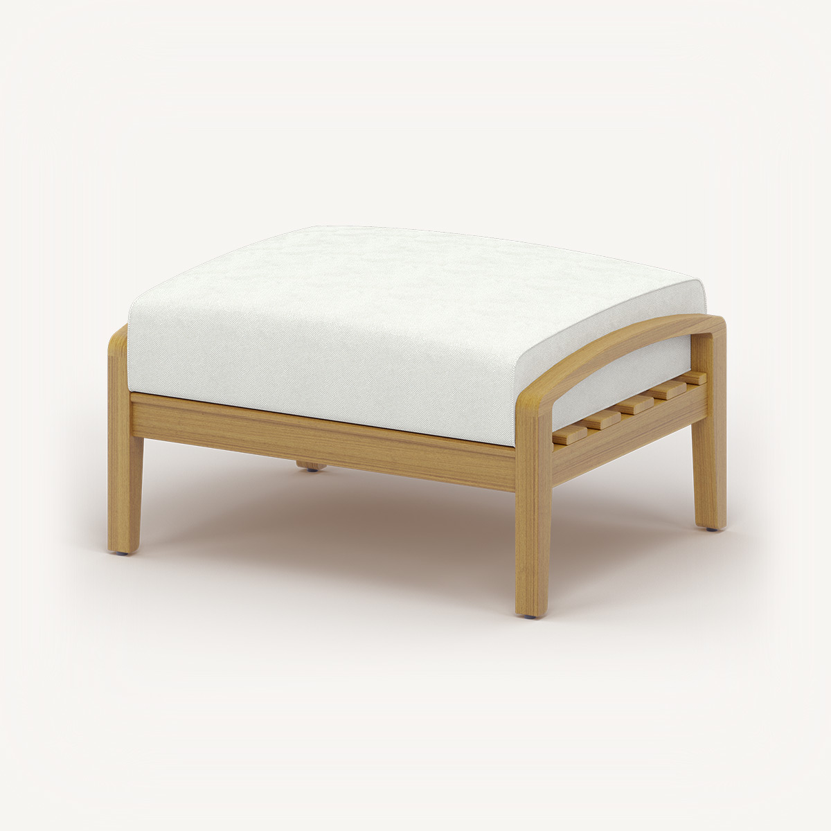 Каркас изготовлен из массива ироко — прочной тропической древесины, устойчивой к влаге, солнцу и перепадам температуры. Обивка выполнена из современных уличных тканей: износостойких, приятных на ощупь, устойчивых к выгоранию и легко очищаемых.