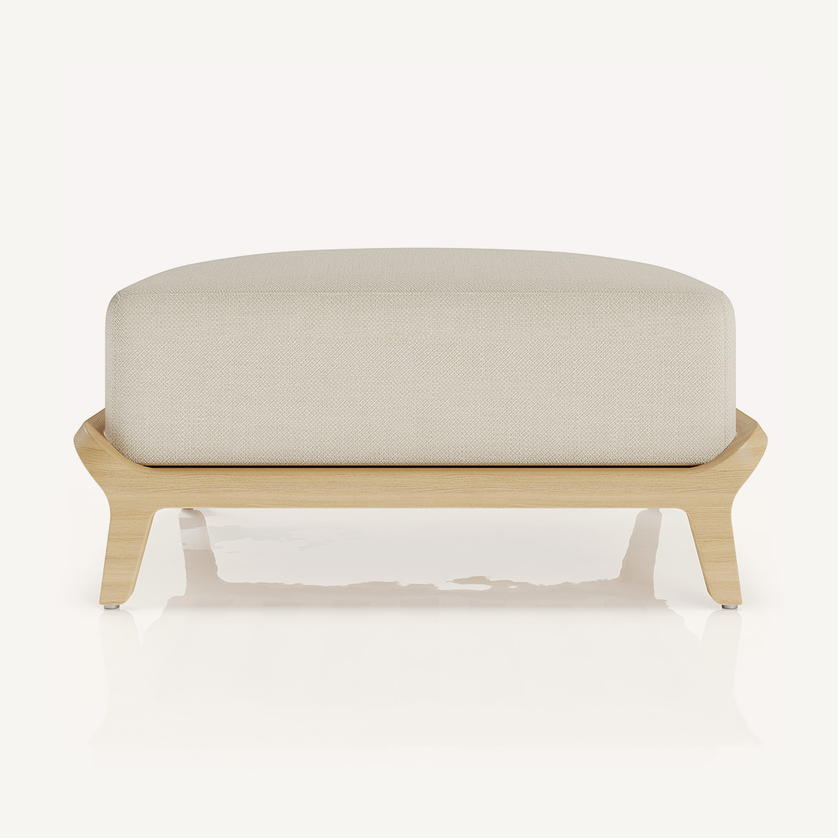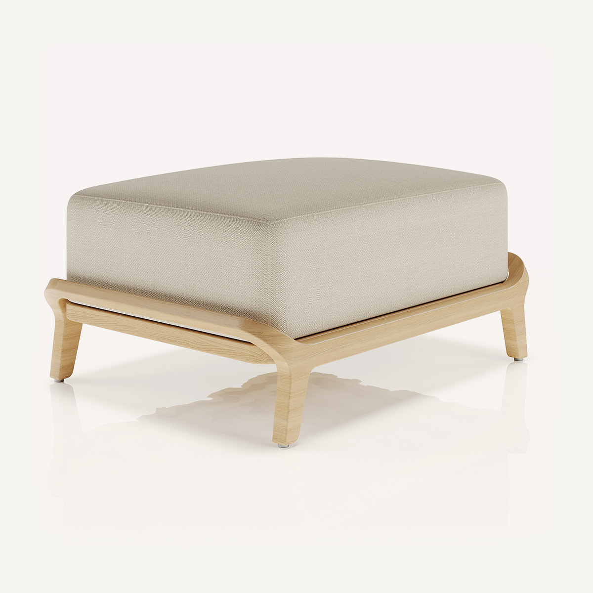 Обивочные материалы — это современные outdoor-ткани, разработанные специально для использования на открытом воздухе. Они обладают высокой светостойкостью (UV-resistance), защитой от влаги и загрязнений, а также сохраняют плотность и форму даже при активной эксплуатации. Съёмные чехлы доступны в палитре приглушённых природных оттенков, подчёркивающих натуральную эстетику дерева. Ткань имеет текстурированную поверхность, тактильно схожую с интерьерным текстилем, что делает посадку комфортной, а визуальный образ — уютным и живым.
