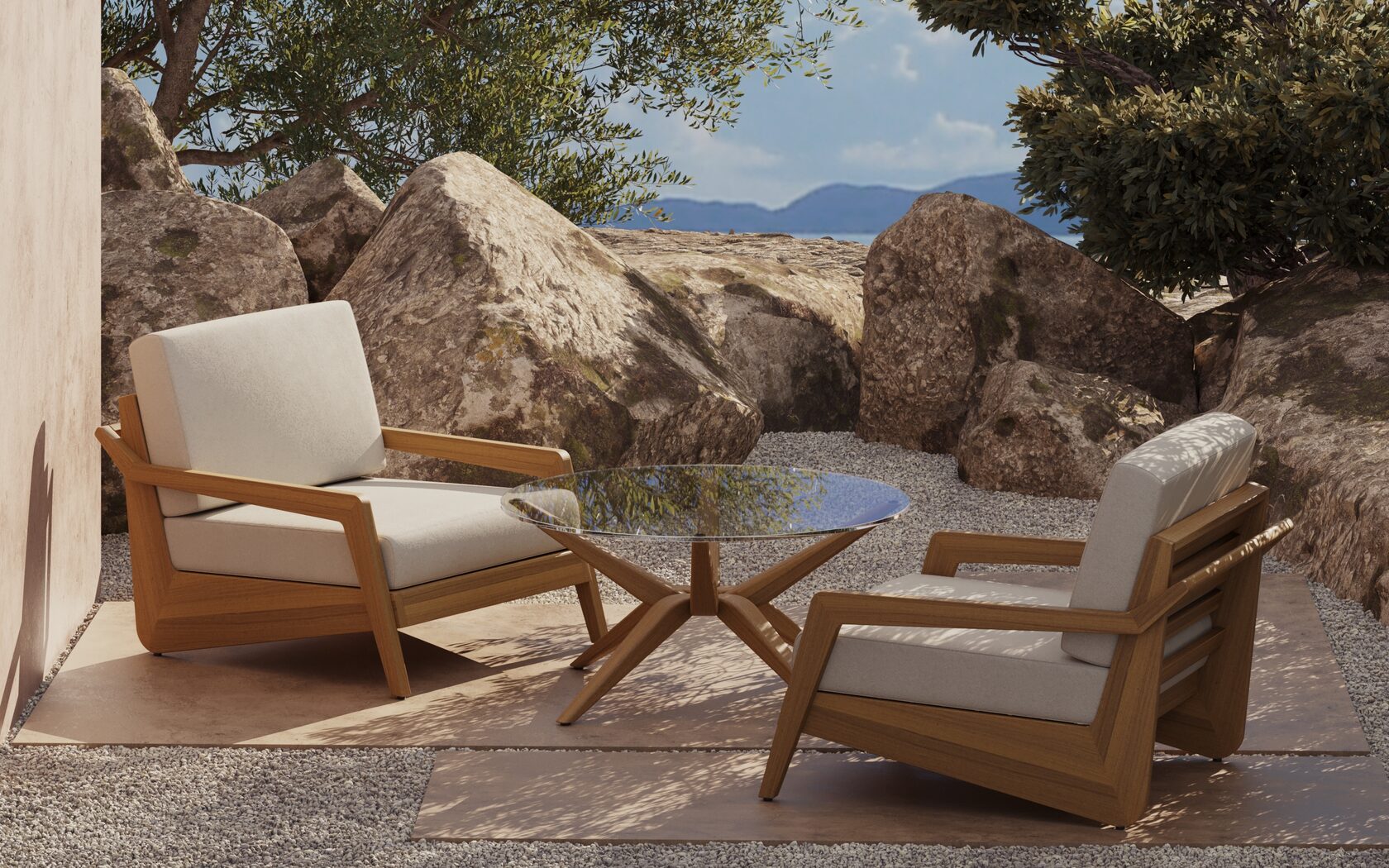 Каркасы мебели коллекции ROCKLIN выполнены из массива ироко (Milicia excelsa) — африканской лиственной породы, устойчивой к агрессивной внешней среде. Ироко обладает плотной структурой, высокой стабильностью геометрии, природной устойчивостью к влаге, грибкам и насекомым, что делает его идеальным выбором для уличной мебели. Благодаря естественному содержанию масел и глубокой текстуре, ироко не требует сложной химической обработки и сохраняет выразительный внешний вид на протяжении многих сезонов. Все соединения выполнены скрыто, с точной подгонкой деталей, что подчёркивает уровень мастерства исполнения.
