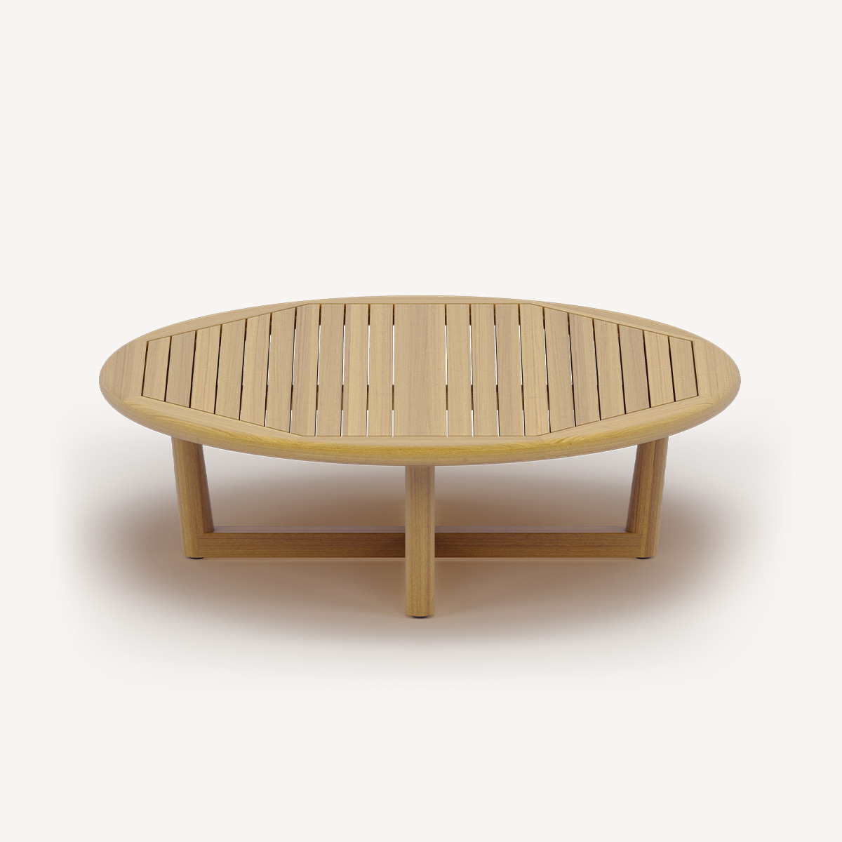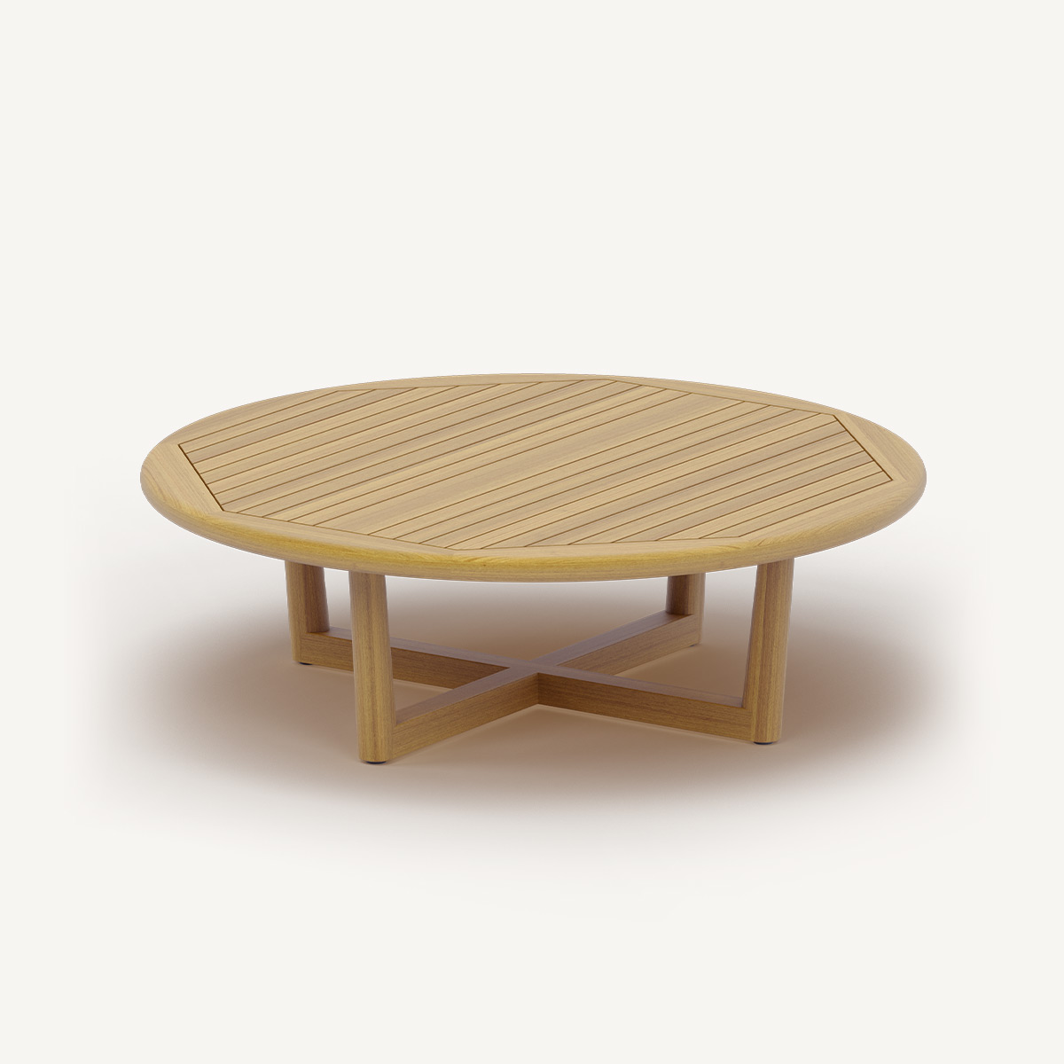 Круглый журнальный столик MADDENS выделяется геометрически выверенной столешницей, где широкие рейки с узкими промежутками вписаны в восьмиугольную рамку — это придаёт поверхности динамику и подчёркивает ремесленный подход. Реечная структура столешницы и визуально лёгкое основание на пересечённых ножках создают гармоничный баланс между массивностью и открытостью.
