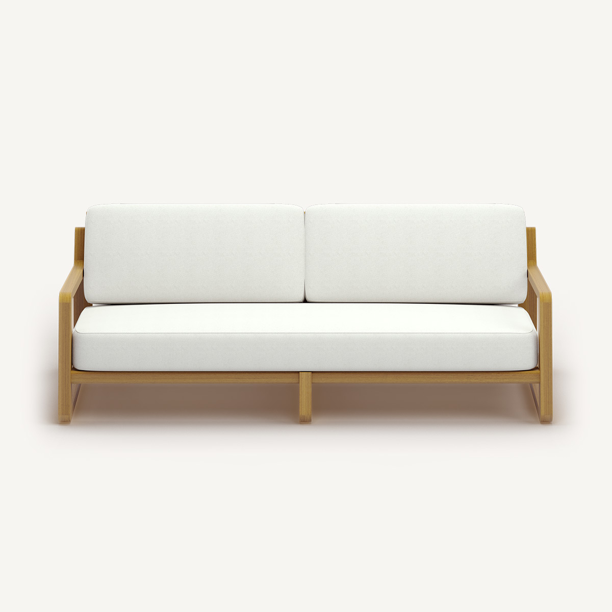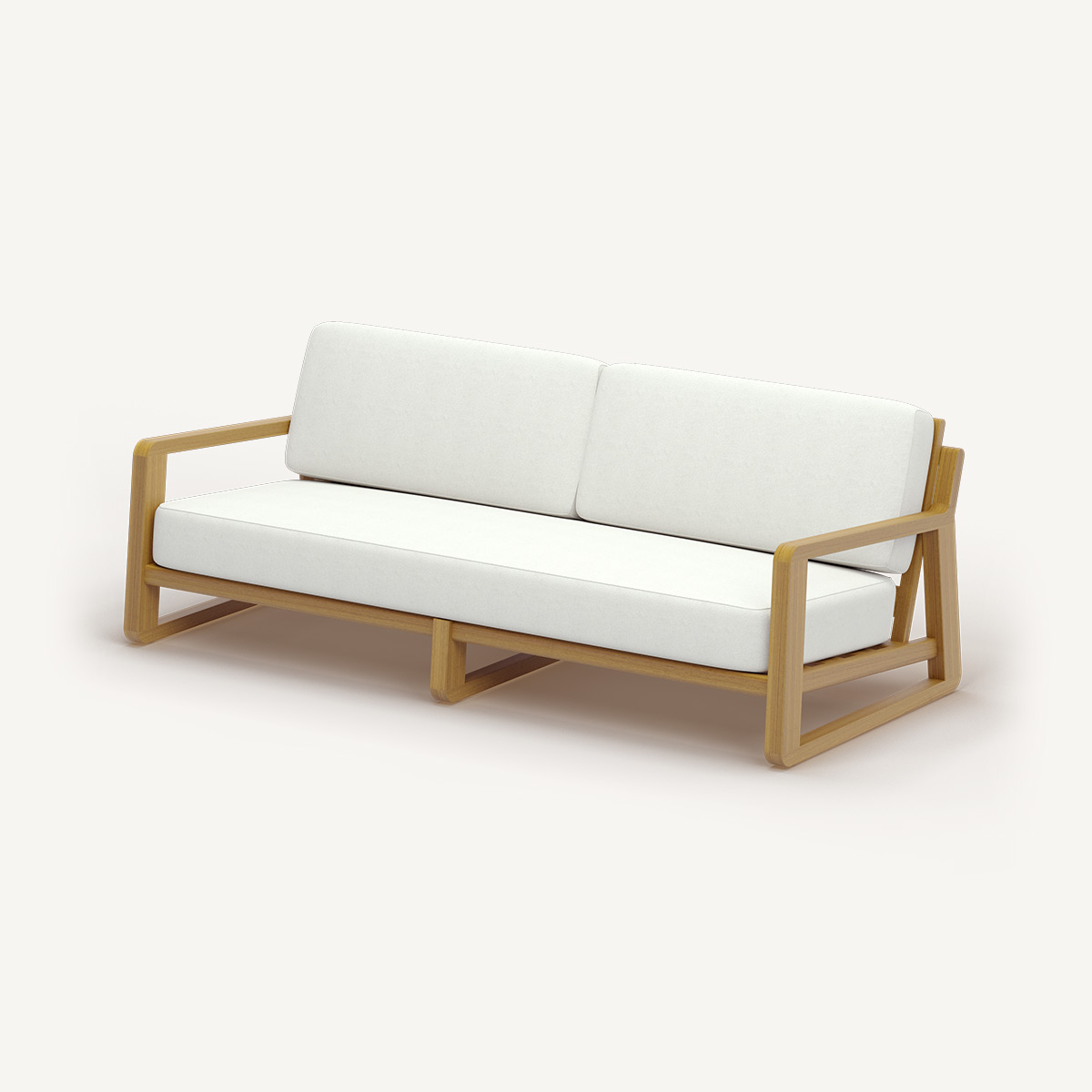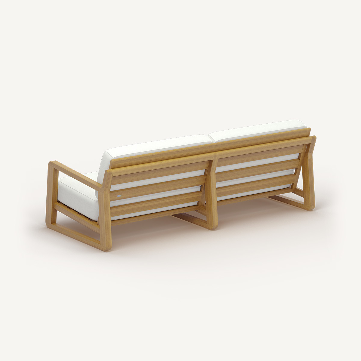 Лёгкий визуально и уверенный по конструкции, этот диван воплощает эстетику американского модернизма в уличной мебели. Геометричный силуэт с характерными наклонными ножками и трапециевидными линиями создаёт ощущение динамики, а реечная спинка формирует эффект воздушности даже в компактных зонах. Основание из ироко устойчиво к перепадам климата, а outdoor‑текстиль сохраняет цвет и форму сезон за сезоном. Диван станет центром лаунж-зоны на террасе отеля, в частном дворике или у бассейна — там, где важны и стиль, и стойкость.